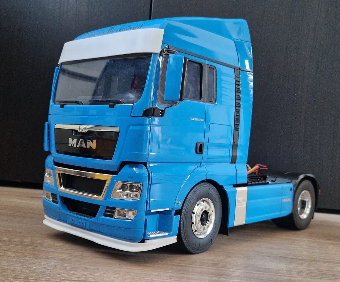 Mooie 3d geprinte onderspoiler die geschikt is voor de 1/14 Tamiya MAN tgx. keuze uit normale onderspoiler of met 4 hella bloklampen.